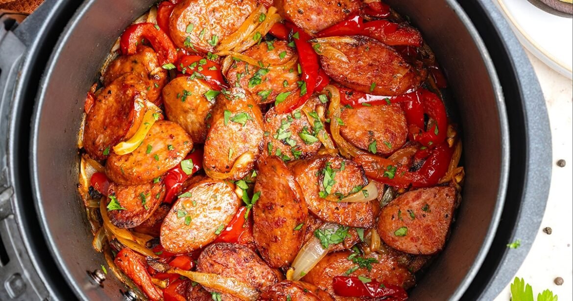 Kielbasa is a type of Polish smoked sausage (we have a similar one in Ukraine), already cooked and wonderfully rich, and it pairs perfectly with sweet onions and red bell peppers. The air fryer crisps the sausage just right while caramelizing the veggies, and a simple seasoning blend ties it all together.