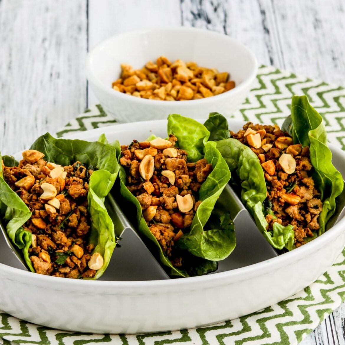 - Each person takes a lettuce leaf, fills with turkey mixture, adds chopped peanuts, and then eats the mixture from the lettuce cup.