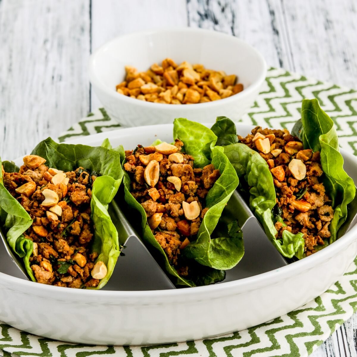 - Serve filling and lettuce leaves in separate bowls, with chopped peanuts in another small bowl.