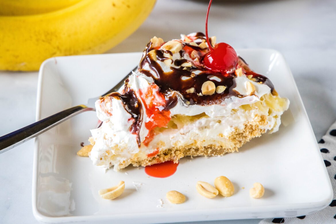- Banana split flavors. Ripe bananas, fluffy whipped cream, and crushed pineapple recreate all the delicious flavors of a classic banana split inside a crunchy cookie crust.