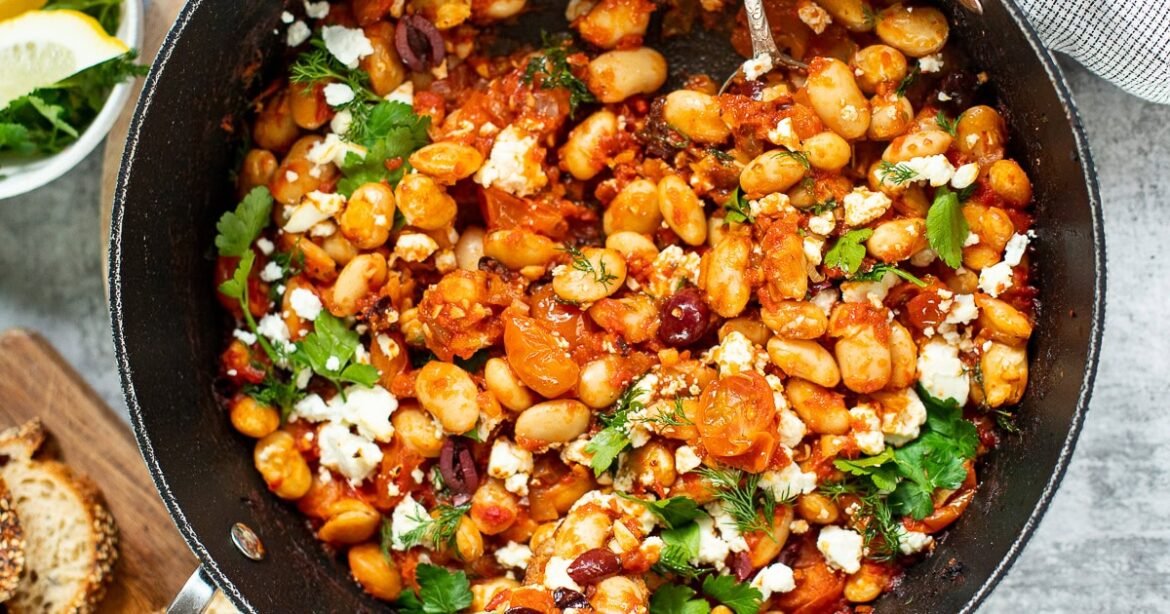 - Main ingredients: Butter beans, feta cheese (or goat cheese for vegan option), and Kalamata olives.