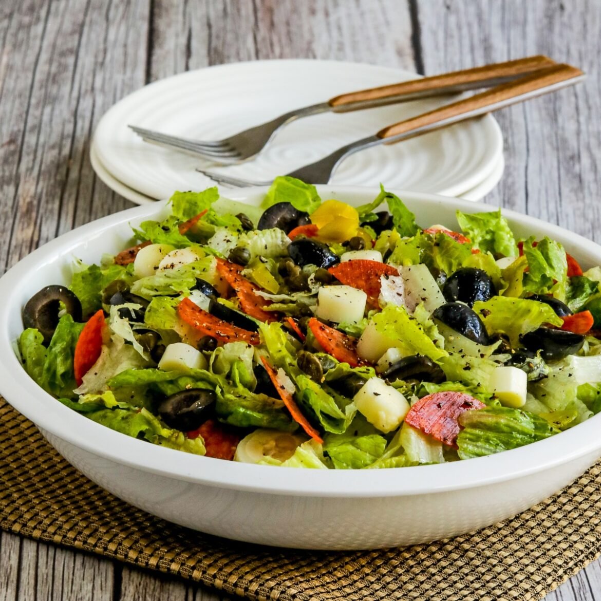 My favorite Chopped Antipasto Salad is like the kind of salad you might order in an Italian restaurant, loaded with tasty ingredients like olives, hearts of palm, pepperoni, marinated Peperoncini, slices of Mozzarella and capers. And recently I decided this recipe really needed a photo makeover! I hope the new photos will entice you to try it.