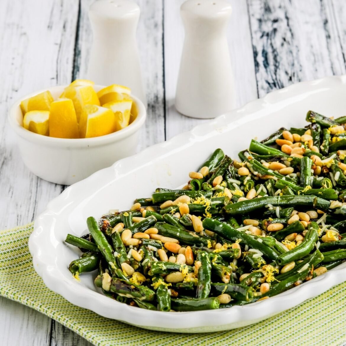 Green Beans with Lemon, Parmesan, and Pine Nuts are quickly stir-fried to turn fresh green beans into a special side dish. And the addition of lemon, Parmesan, and pine nuts turns green beans into a gourmet treat!