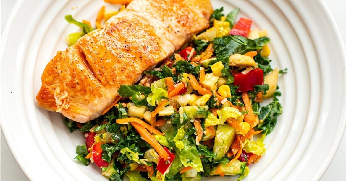 The first time I made this, it was one of those “what do I have in the fridge?” situations. I had a couple salmon fillets and a whole bunch of half-used produce: kale, corn, some crunchy lettuce, and half an apple. I tossed it all together, whipped up a quick dressing, and honestly… it was kind of magic. I loved the combo so much, I made it again a few days later—this time with grilled chicken—and it totally held up.