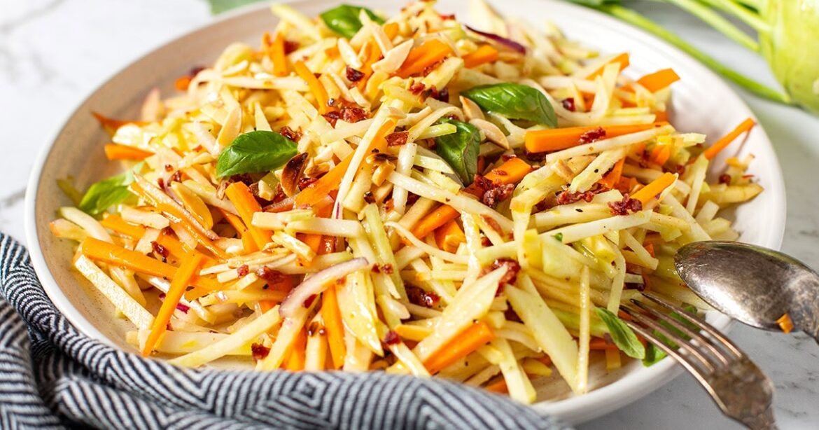 Home Healthy Eating Kohlrabi Slaw With Apple, Almonds & Cranberries