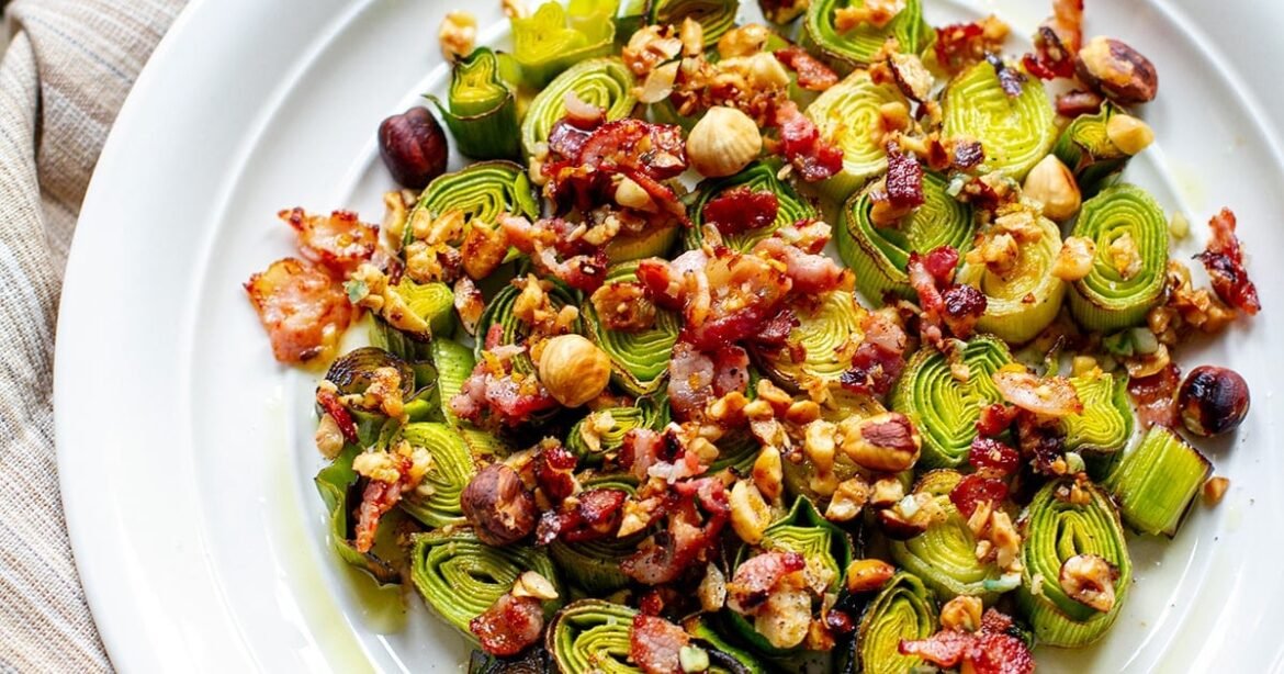 If you’re looking for a flavorful and healthy dish, try roasted leeks topped with crispy bacon and hazelnut dressing. This unique combination of flavors and textures can be served as a side or appetizer and is suitable for paleo, gluten-free, Whole30, and low-carb diets.