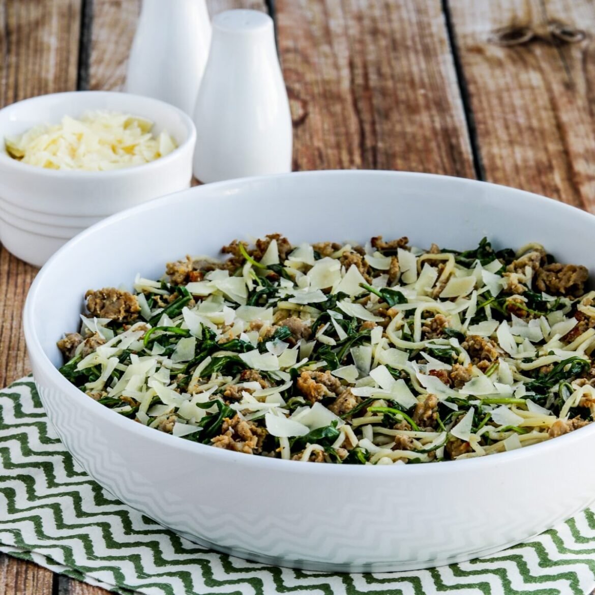 For years, I enjoyed this dinner with whole wheat spaghetti, plenty of sausage, and lots of arugula. However, I have recently discovered Palmini Pasta, made from hearts of palm, which has allowed me to experiment with a low-carb version of this recipe. The results were a huge success!