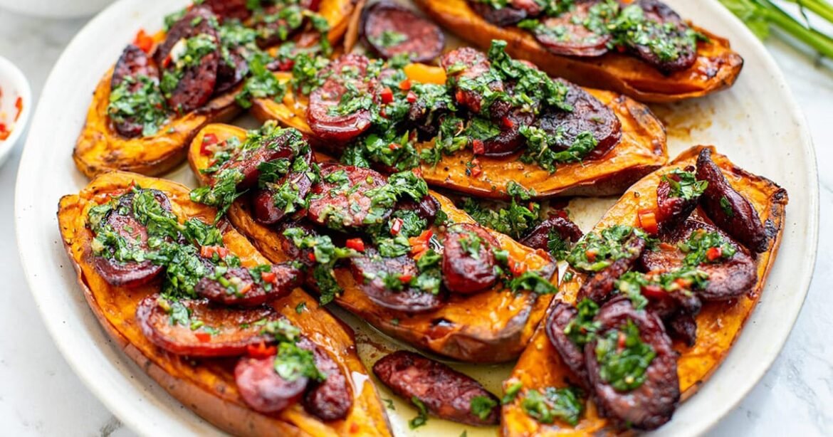 Home Main Dish Recipe Sweet Potatoes With Chorizo & Chimichurri